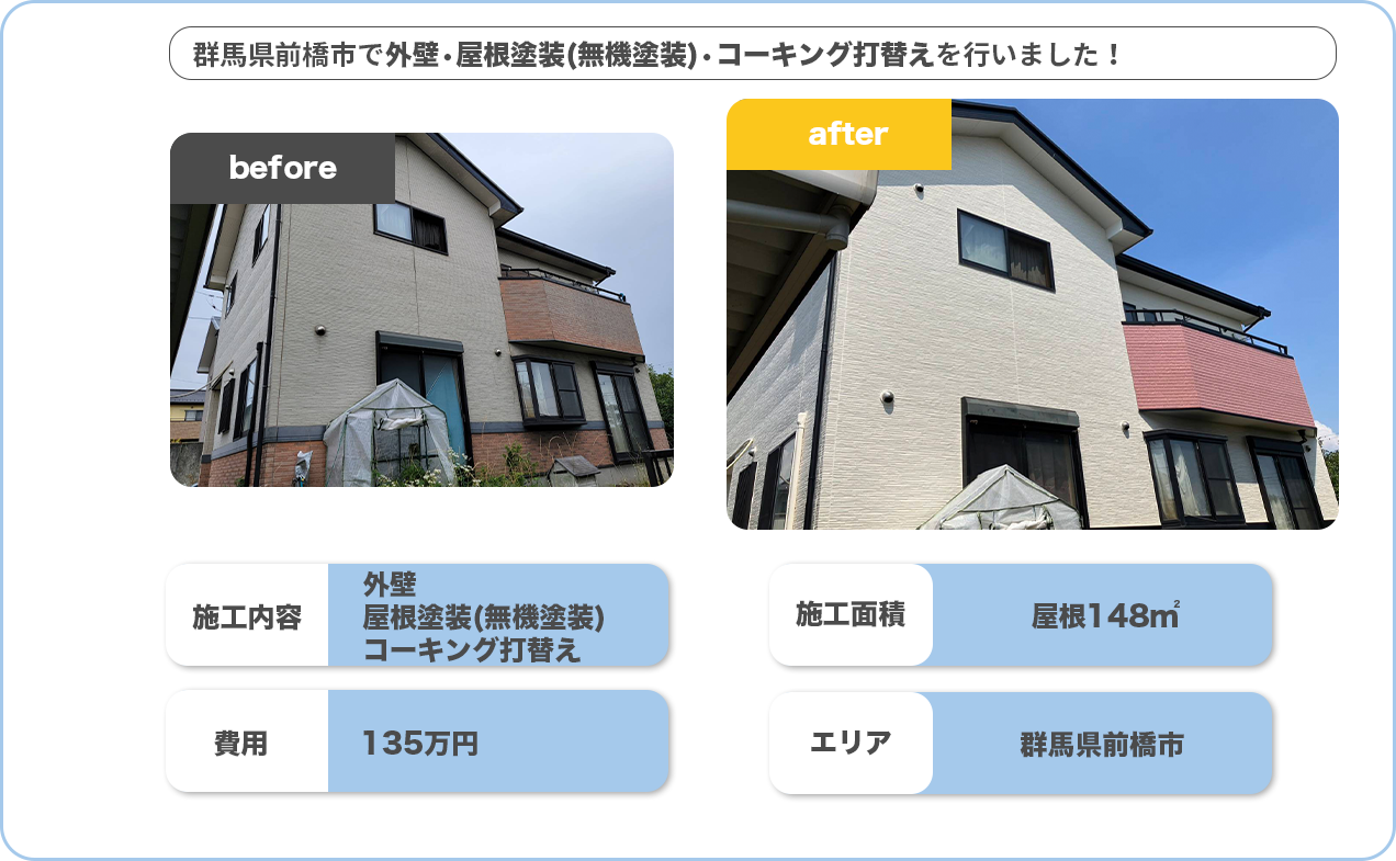 群馬県前橋市で外壁塗装(無機塗装)•コーキング打替えを行いました!!