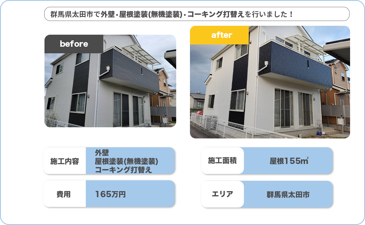 群馬県太田市で外壁・屋根塗装(無機塗装)・コーキング打ち替えを行いました!
